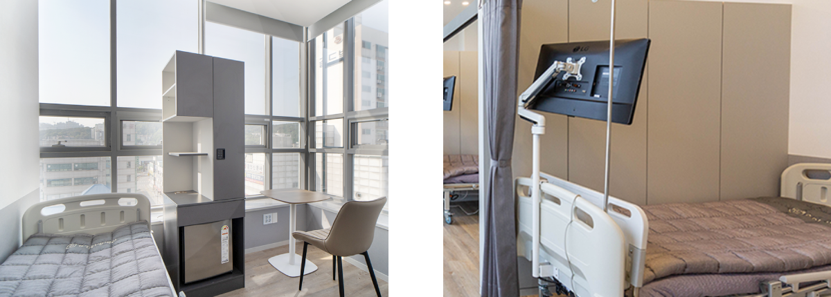 프라이빗하게 편하게 계실 수 있도록 개인별로 나누어진 편안한 입원실과 맛있는 식사 그리고 간호사 24시간 집중케어로 회복을 돕습니다.